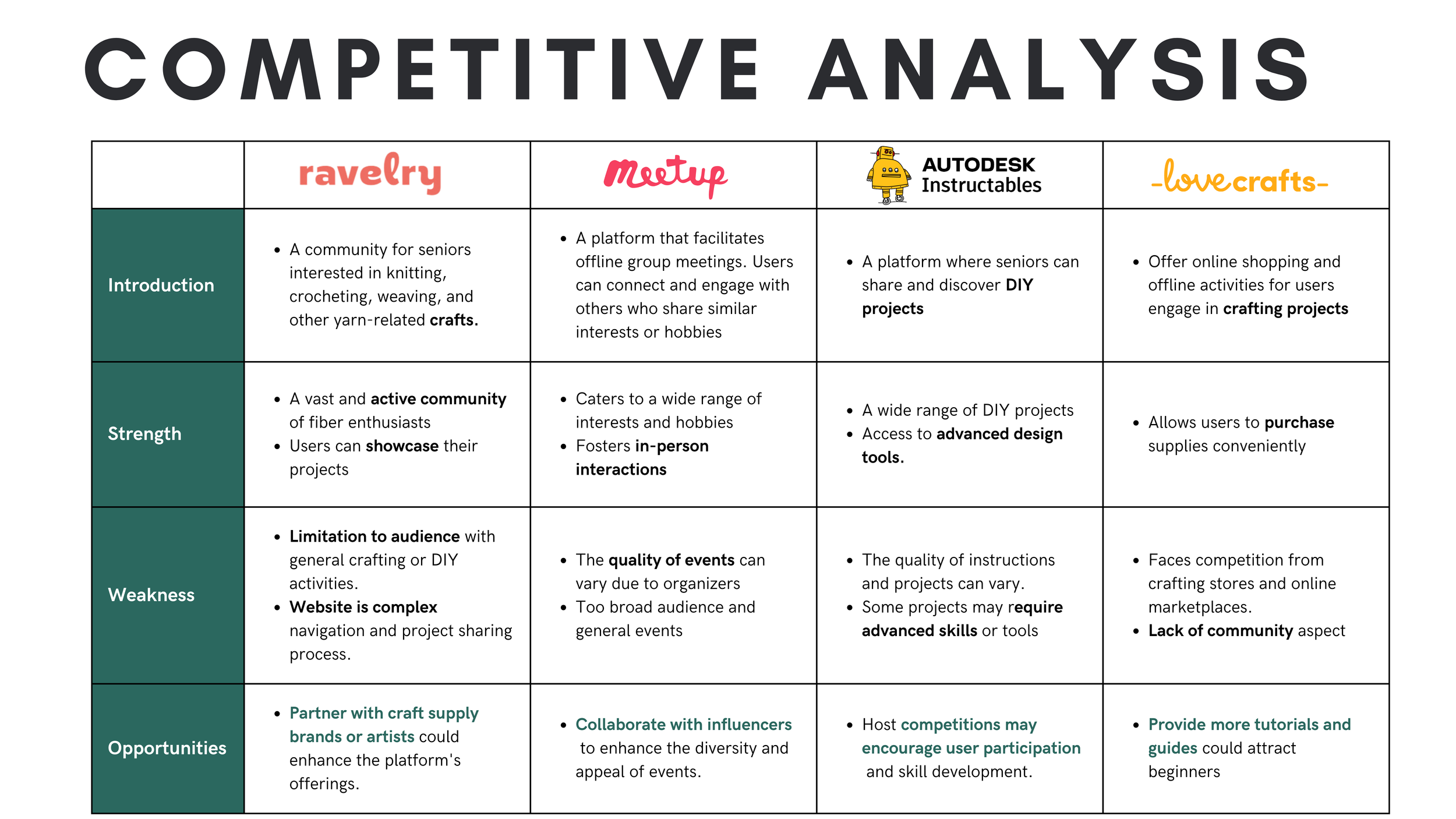 Based on our research we narrowed our focus to “Young Seniors” aged 65-75 and created: