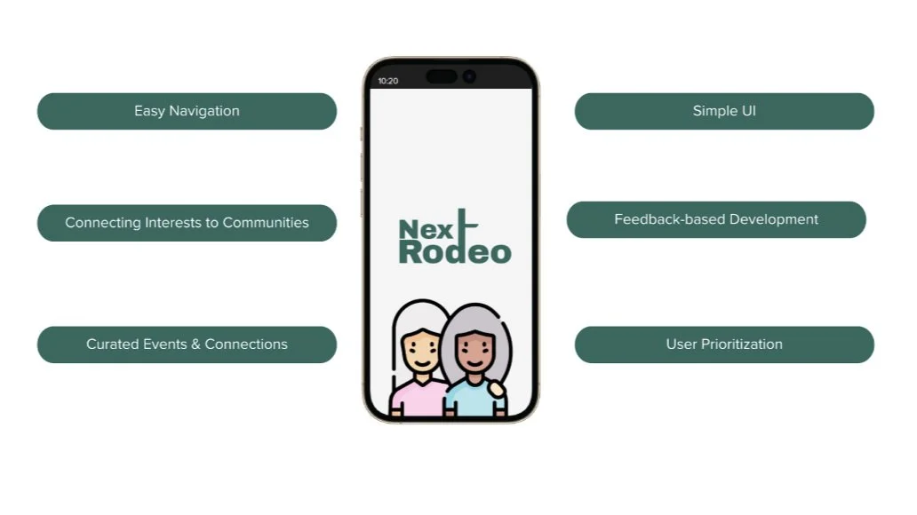 This project re-affirmed the importance of remaining open-minded as to the many forms that a design process may yield and adjusting based on available information. The assignment brief for this project specified that we design a new social media platform, but our research suggested that may not be the best way to address the needs and values of our audience in the immediate term. As a result, we decided to take an incremental approach, where our initial release focused on building community ties and furthering our understanding of our users. Our roadmap suggested next steps could include seeking sponsorship opportunities and building a platform to host event-driven forums and online community events.